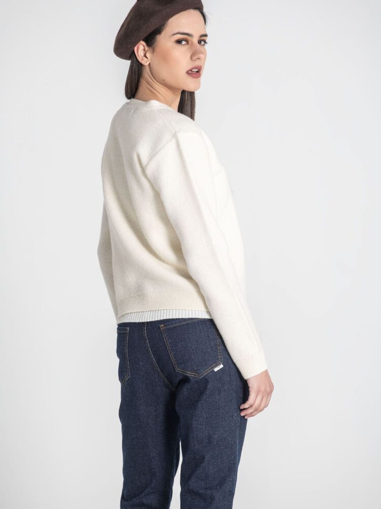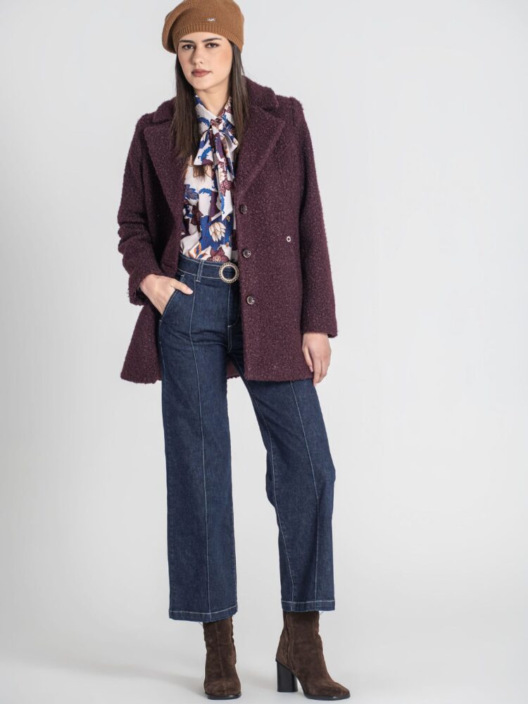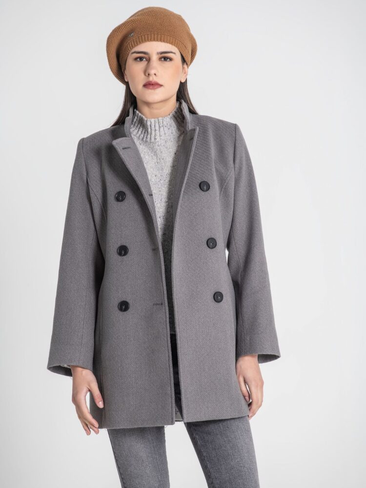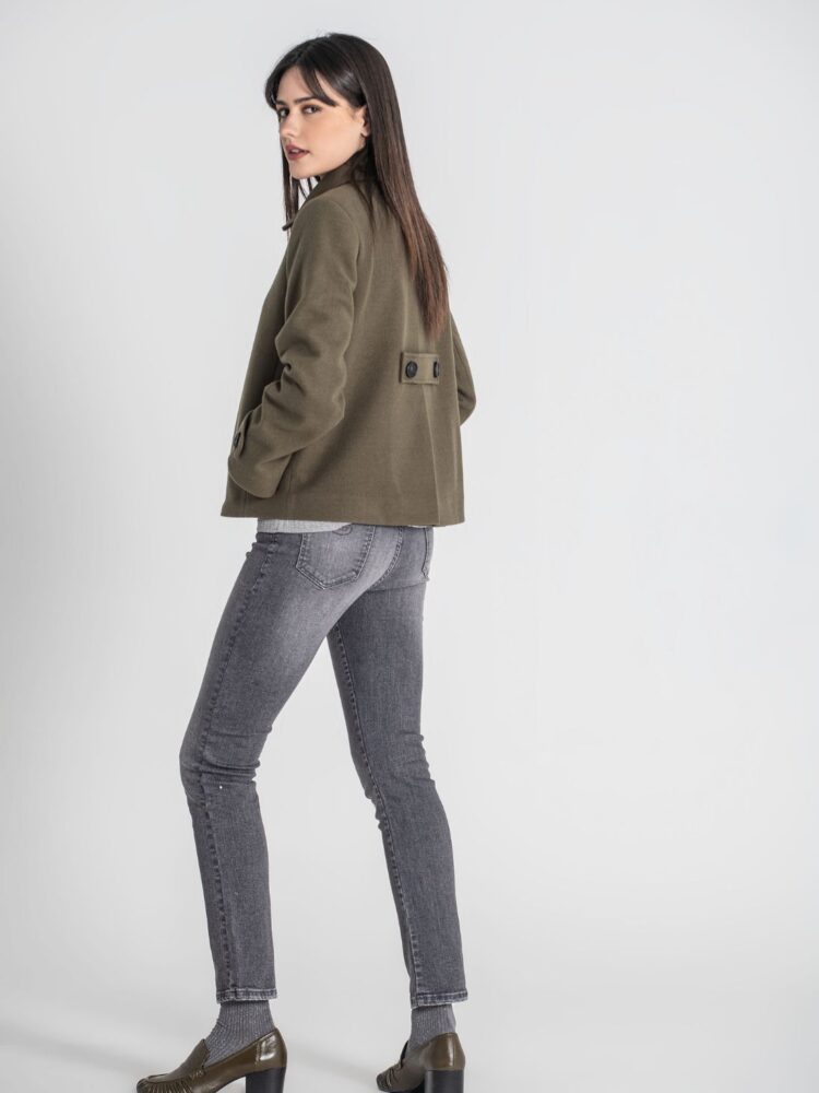 Casaco curto, com botões de destaque e detalhe traseiro. Versátil e elegante, perfeito para complementar looks modernos e urbanos.
