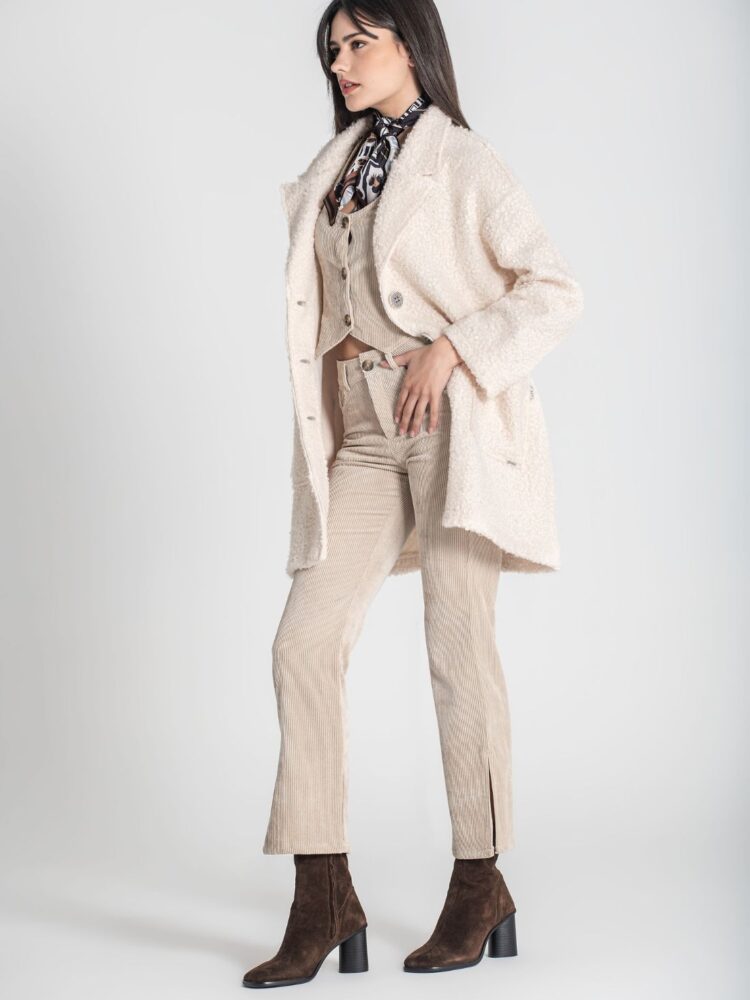 Casaco macio e quente, com corte reto e lapela clássica. Possui três botões frontais e dois bolsos. Uma peça confortável e trendy para os dias frios.