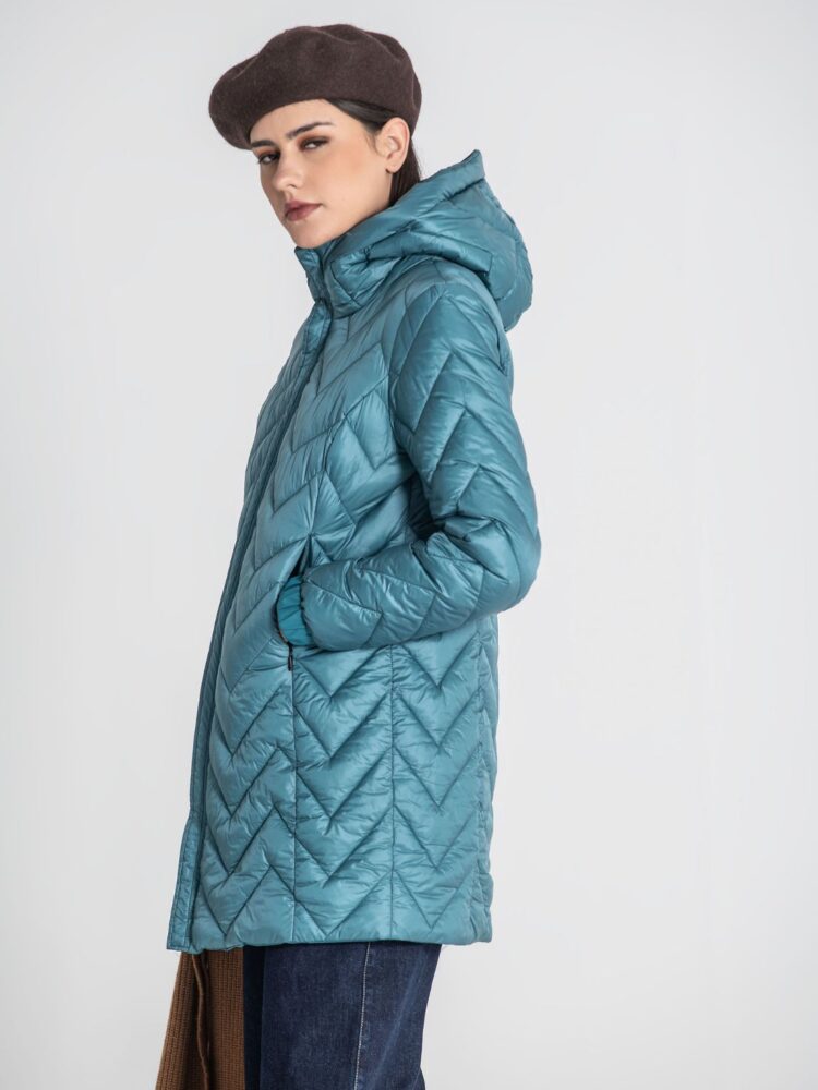 Este kispo reversível combina praticidade e estilo. De um lado o design liso para um look minimalista, do outro, o padrão acolchoado que garante um toque moderno e sofisticado. Com carapuço prático e dois bolsos laterais, oferece conforto e funcionalidade para o dia a dia.
