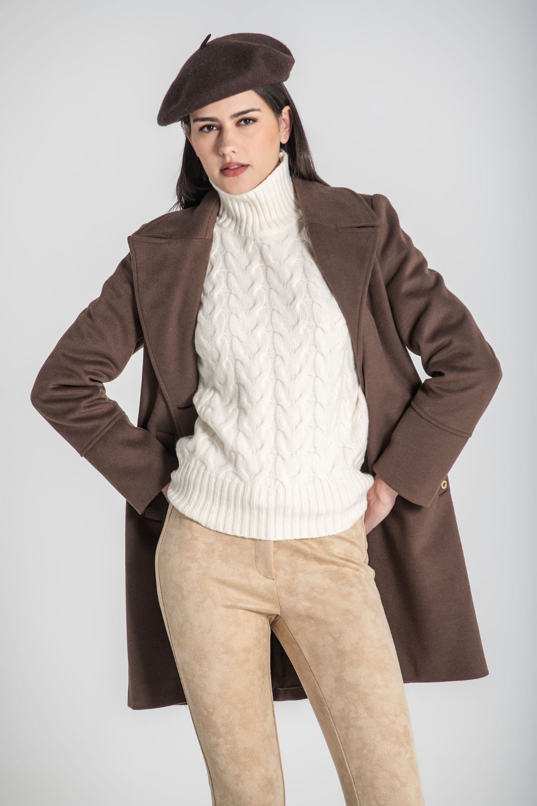 Clássico e sofisticado, este casaco traz elegância a qualquer look. Com corte reto, lapela larga, dois bolsos laterais e botões em detalhe, é a escolha ideal para os dias frios com estilo e conforto.