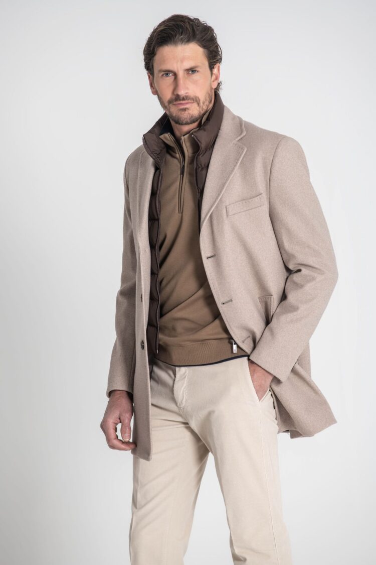 Uma peça de referência para um guarda-roupa elegante e moderno. Este sobretudo destaca-se pela sua qualidade e corte intemporal, que garante um visual sofisticado em qualquer ocasião. O detalhe do acolchoado interior removível adiciona versatilidade. Com fecho de botões, bolsos laterais e acabamentos de excelência, é a escolha perfeita para homens que valorizam estilo, distinção e durabilidade.